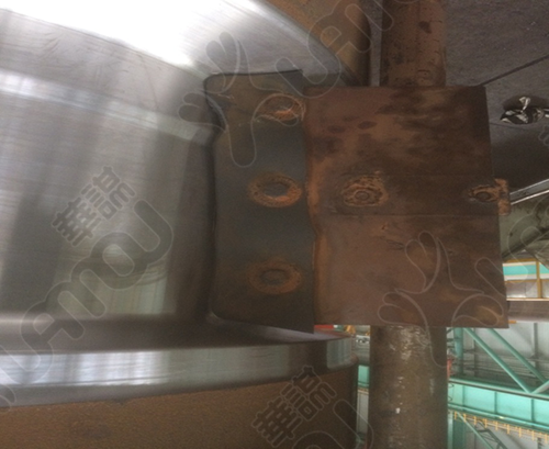 改善前:清理、測量軸承座上壓力板時需要人爬上去,安全帶沒有地方掛,如果不小心會有墜落摔傷的危險。